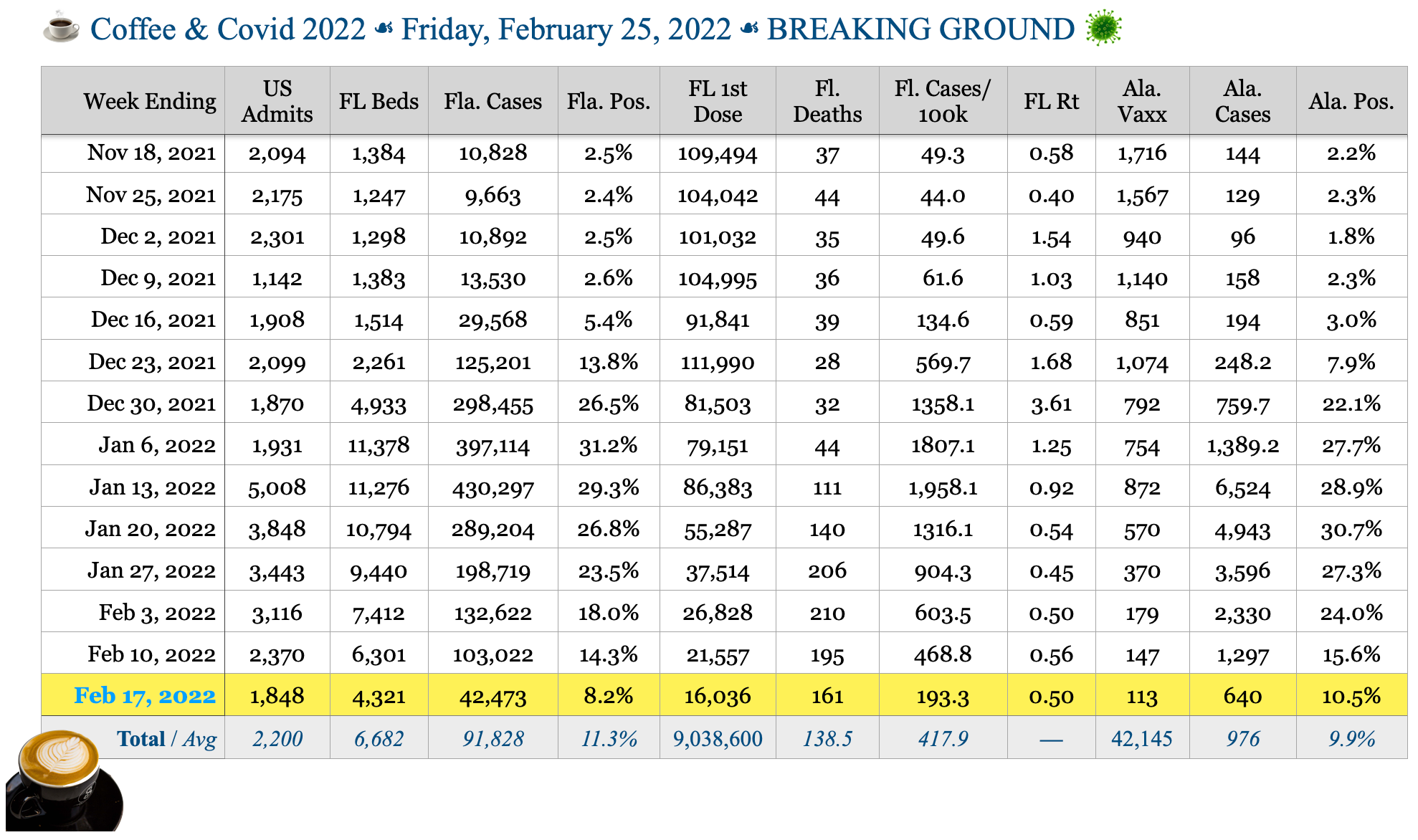 ☕️ Coffee & Covid ☙ Friday, February 25, 2022 ☙ BREAKING GROUND 🦠
