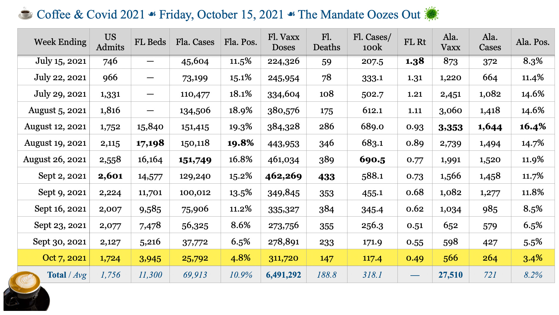 ☕️ Coffee & Covid ☙ Friday, October 15, 2021 ☙ THE MANDATE OOZES OUT 🦠