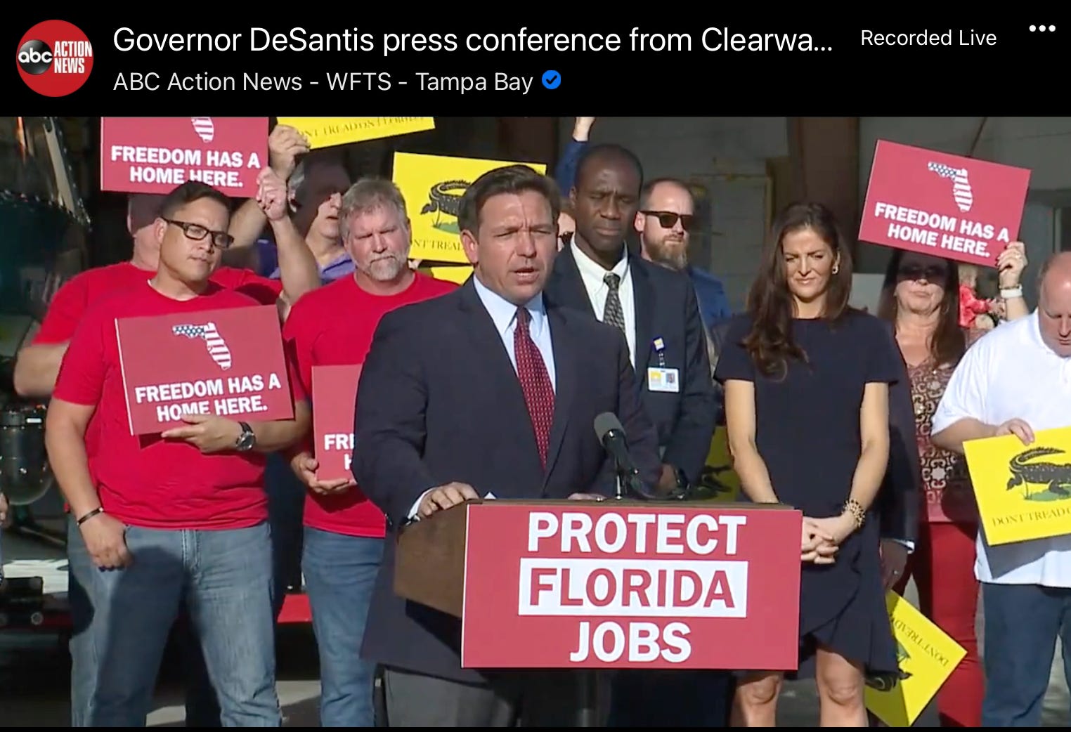 Here’s a link to the video of the press conference: [ABC Action News - WFTS - Tampa Bay - Governor DeSantis press conference from Clearwater | Facebook].