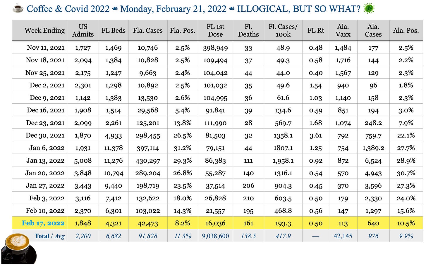☕️ Coffee & Covid ☙ Monday, February 21, 2022 ☙ ILLOGICAL, BUT SO WHAT? 🦠
