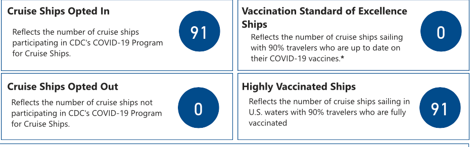 Nobody wants to be labeled “Unvaxxed,” so the big cruise lines voluntarily kept their mandates. The CDC’s web page this morning reports that “91 ships opted in” to the color-coding system, and ZERO ships “opted out.” All 91 ships are rated “highly vaccinated” by the CDC.