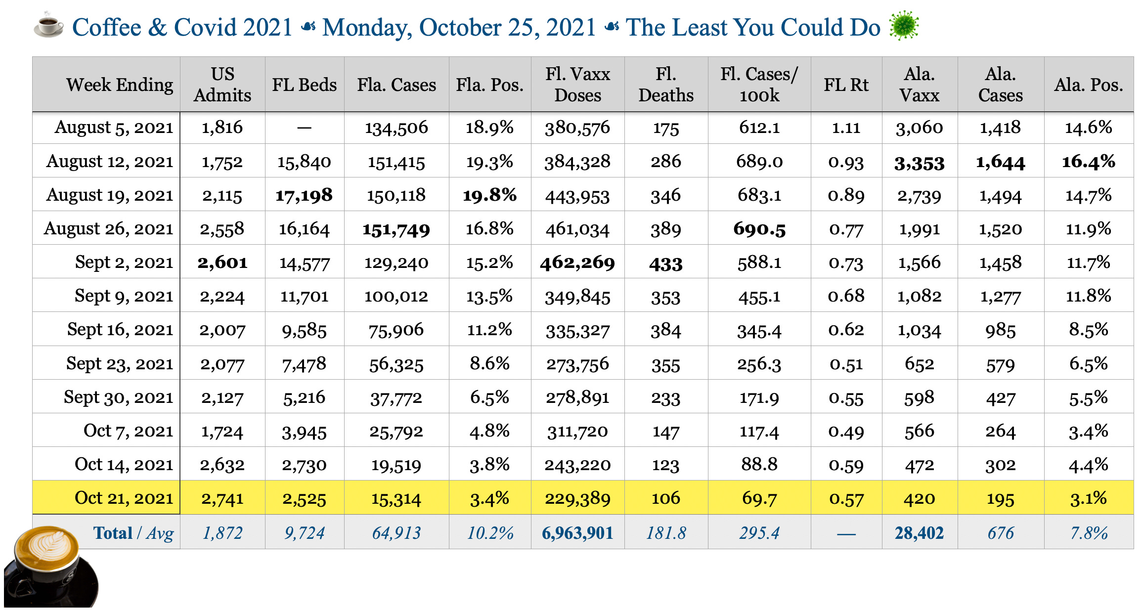 ☕️ Coffee & Covid ☙ Monday, October 24, 2021 ☙ THE LEAST YOU COULD DO 🦠
