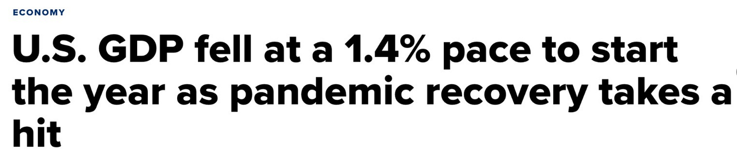 📉 I reported yesterday about Biden’s disastrous management of the economy resulting in an appalling drop in U.S. GDP growth, which fell from +6.9 percent last quarter to negative -1.4 percent this quarter. Biden and his minions have repeatedly claimed that the poor economy is a sacrifice that we must all collectively make in order to teach that rascal Putin a lesson he won’t forget and free the heroic Ukrainian resistance fighters.
