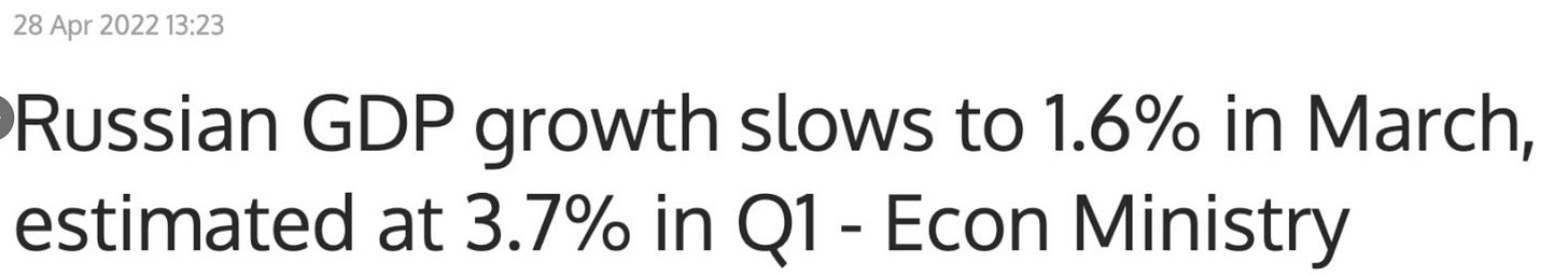 But guess what? Russia’s financial report is out now. While ours dropped a massive combined -8.3%, the report shows Russia’s economy grew at almost +3.7% last quarter.