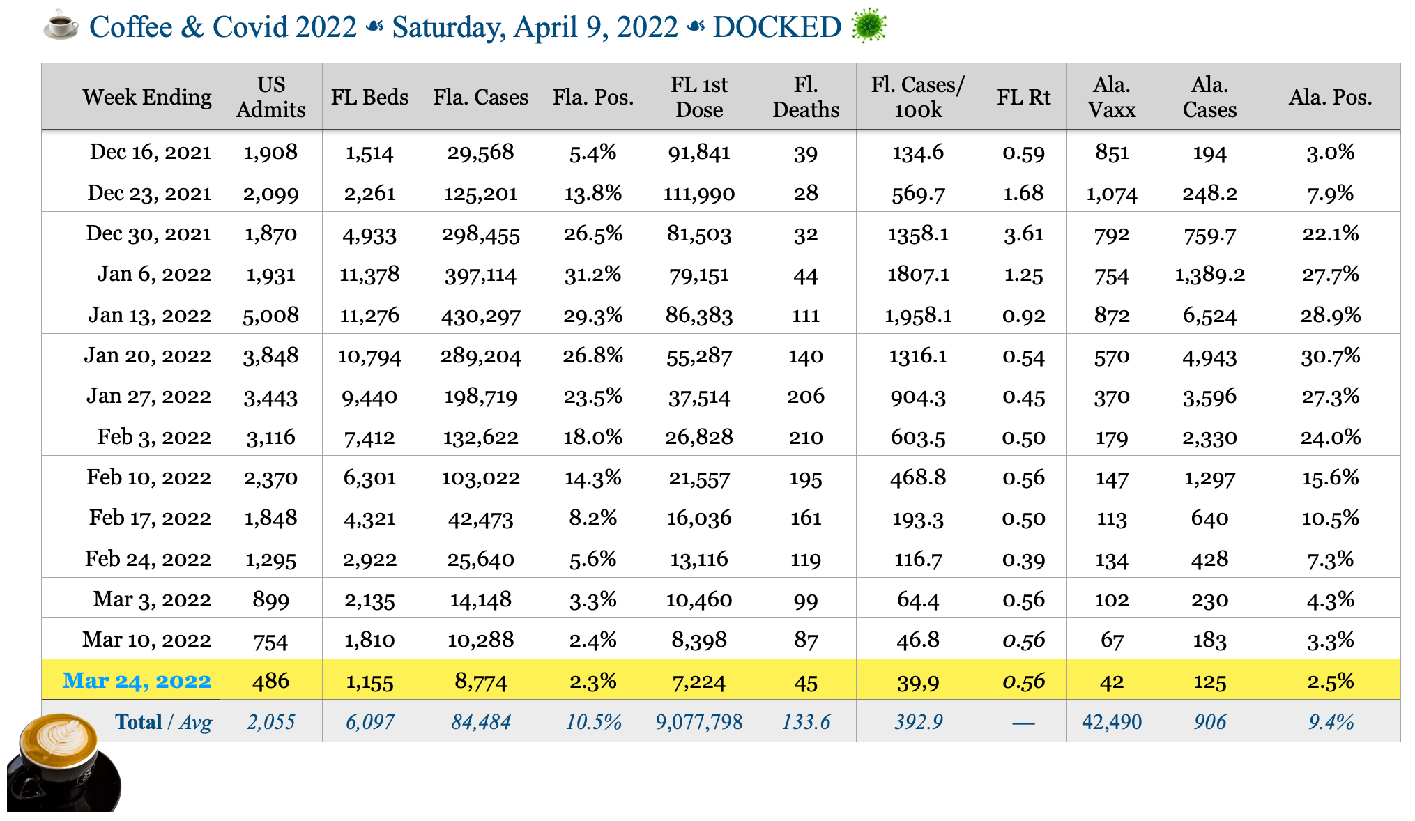 ☕️ Coffee & Covid ☙ Saturday, April 9, 2022 ☙ DOCKED 🦠