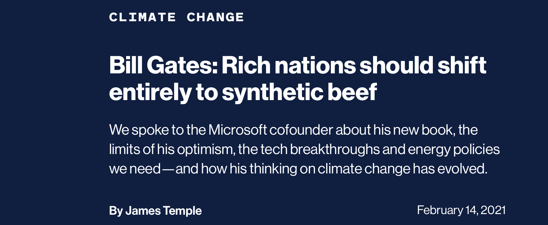Why just “rich nations?” Probably because plant burgers are going to be super expensive and there will only be a few places to get the patented products. Like from Bill Gates’ three companies.