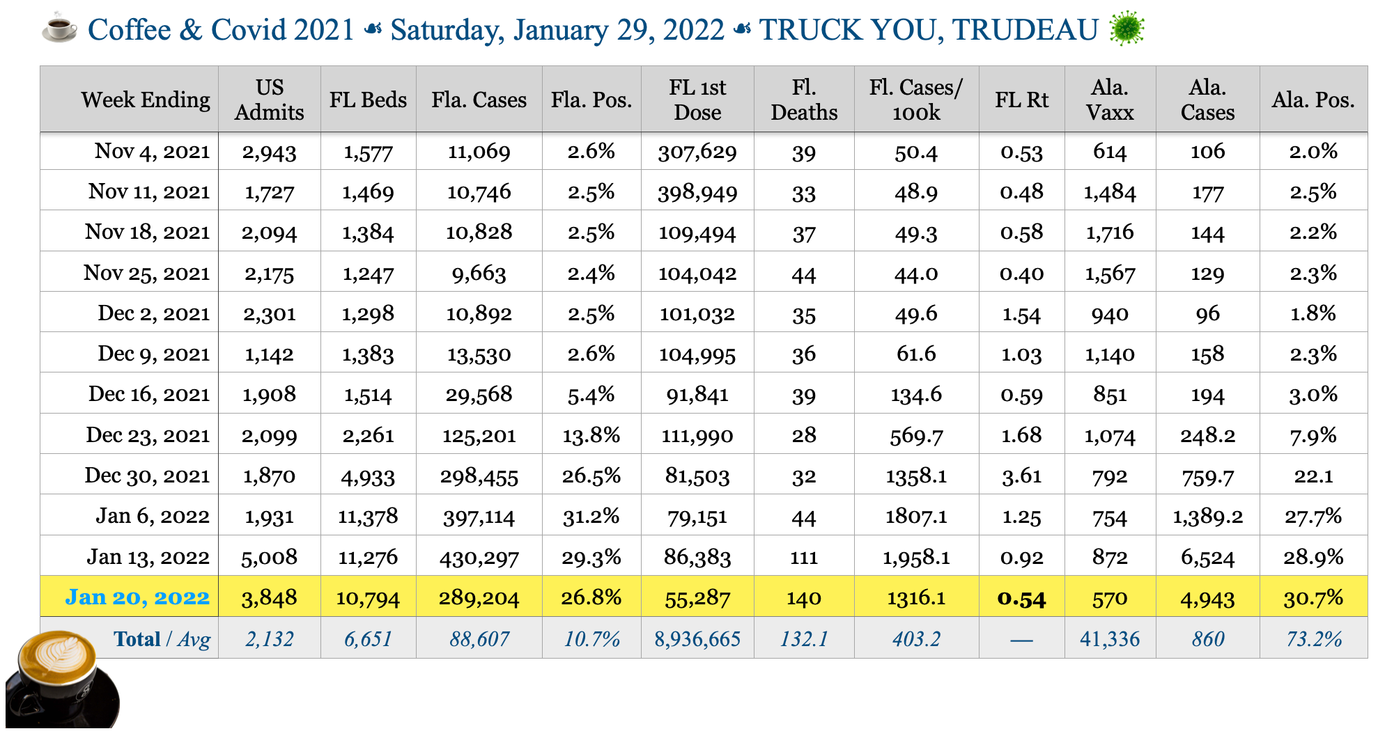 ☕️ Coffee & Covid ☙ Saturday, January 29, 2022 ☙ TRUCK YOU, TRUDEAU 🦠