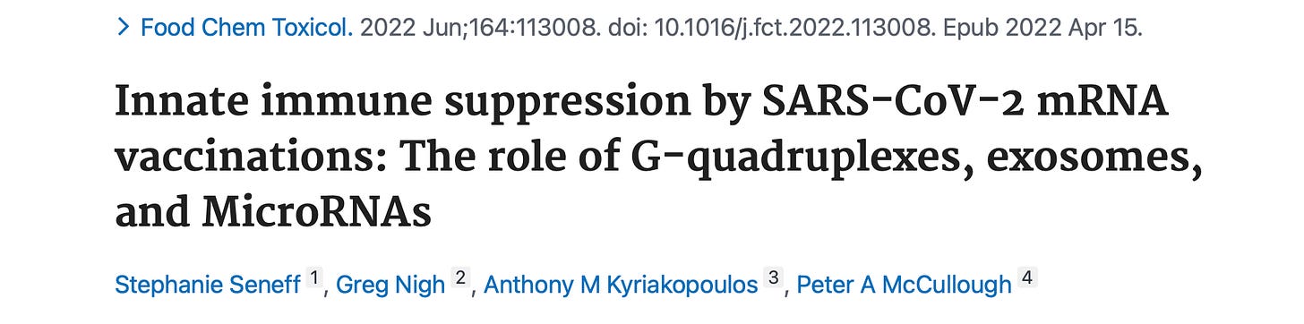 “We also identify potential profound disturbances in regulatory control of protein synthesis and CANCER surveillance. These disturbances potentially have a causal link to neurodegenerative disease, myocarditis, immune thrombocytopenia, Bell’s palsy, liver disease, impaired adaptive immunity, impaired DNA damage response and TUMORIGENESIS.”