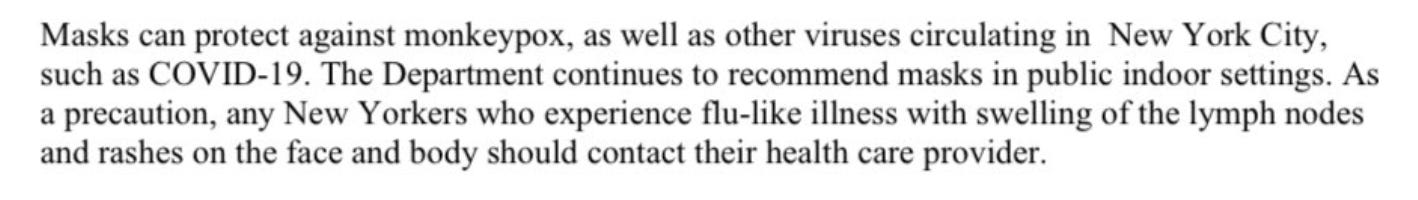 Meanwhile, New York City’s Health Department recommended yesterday that people wear masks to stop the spread of monkeypox. Masks. That’s it. That’s the whole suggestion. Not one word about saunas, festivals, OR beagles.
