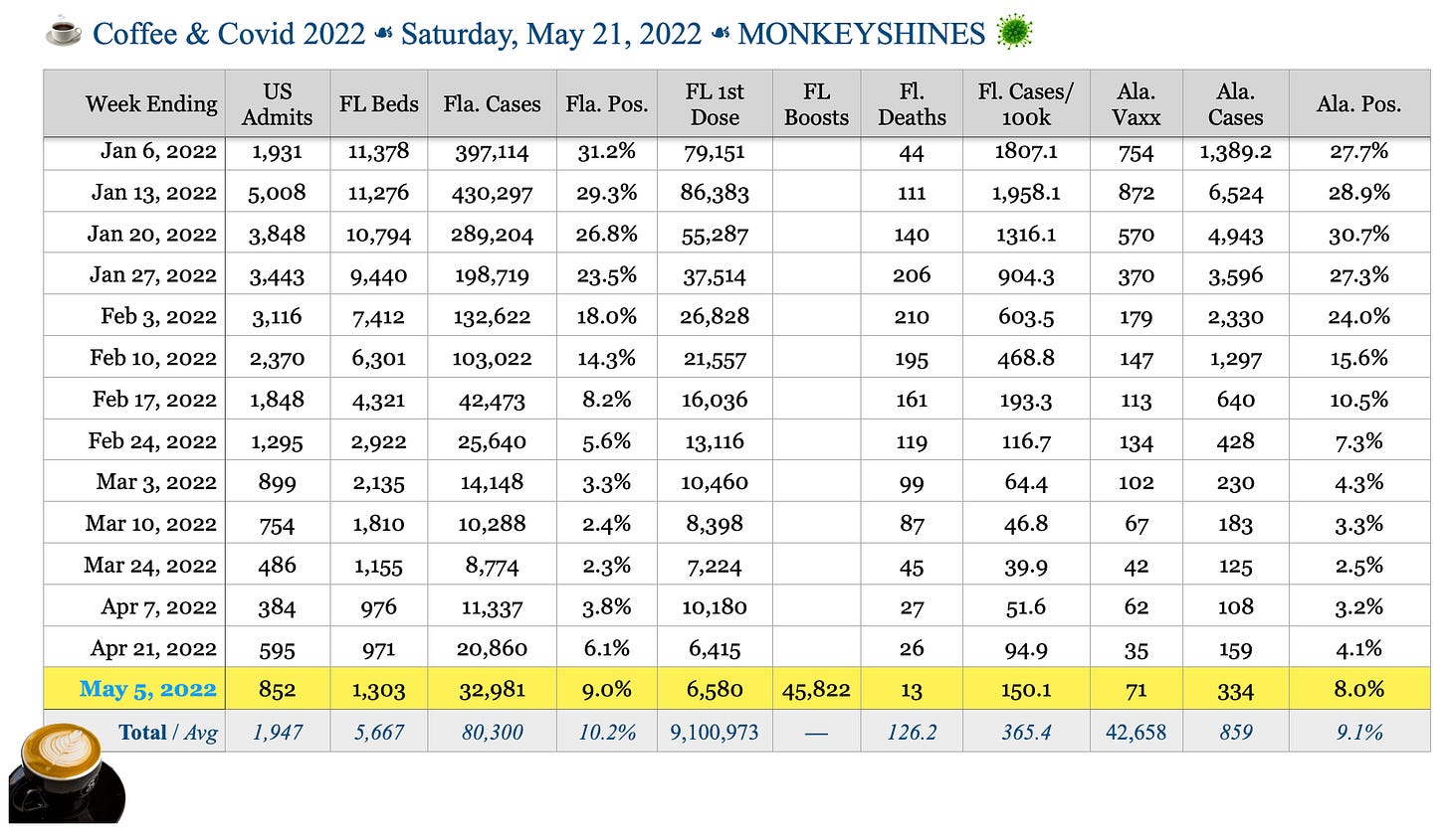 ☕️ Coffee & Covid ☙ Saturday, May 21, 2022 ☙ MONKEYSHINES 🦠