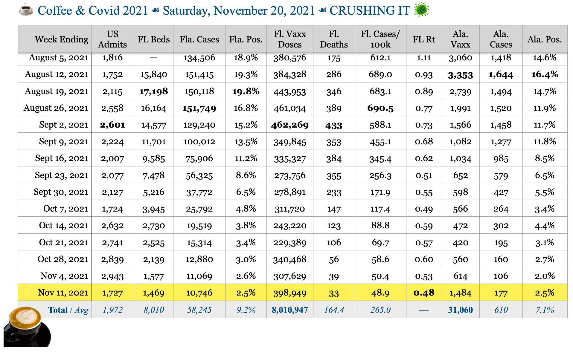 ☕️ Coffee & Covid ☙ Saturday, November 20, 2021 ☙ CRUSHING IT 🦠