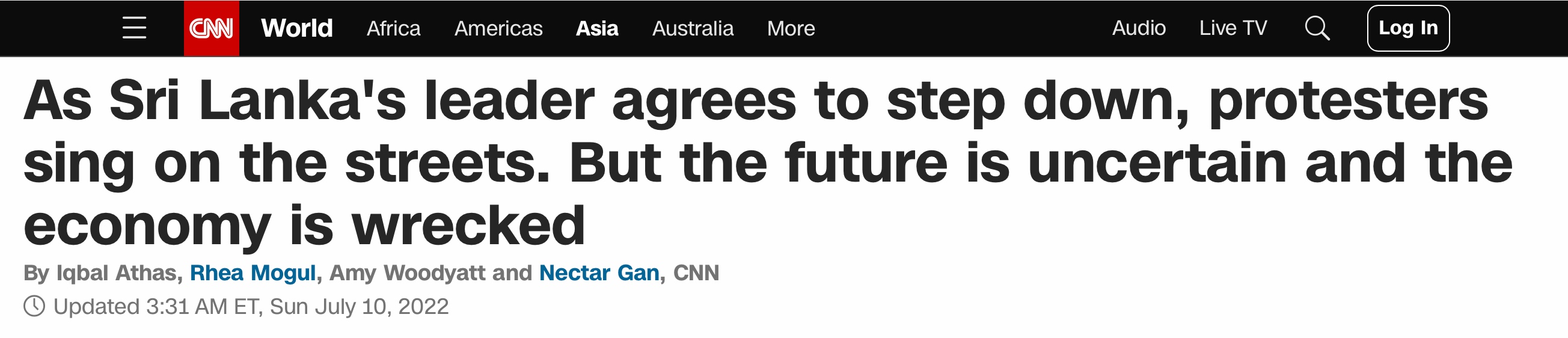 🔥 The unfortunate president of Sri Lanka, Gotabaya Rajapaksa, resigned and fled the country in disgrace yesterday. Massed protestors invaded the presidential palace, set first to the prime minister’s residence, and overran the country’s central bank, generating fun video like scenes of overheated protestors cooling off and frolicking in the presidential swimming pool.