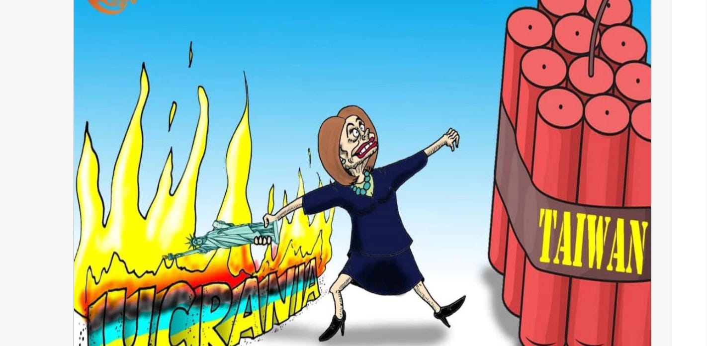 Here’s a thought experiment for you. If your sworn public enemy completely surrounded your island with massive military hardware bristling with hot ammo, would you worry that something more than just a “live fire drill” was going on? I’m starting to wonder if Pelosi was actually helping Taiwan, or was really secretly helping the Chinese, by giving them an excuse to get in position for an invasion.