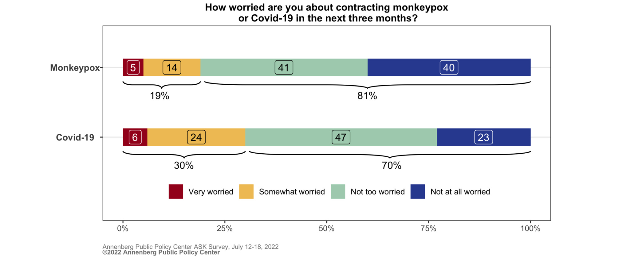 First, 2/3 as many people are worried about catching MPX (19%) as are still worried about catching covid (30%):