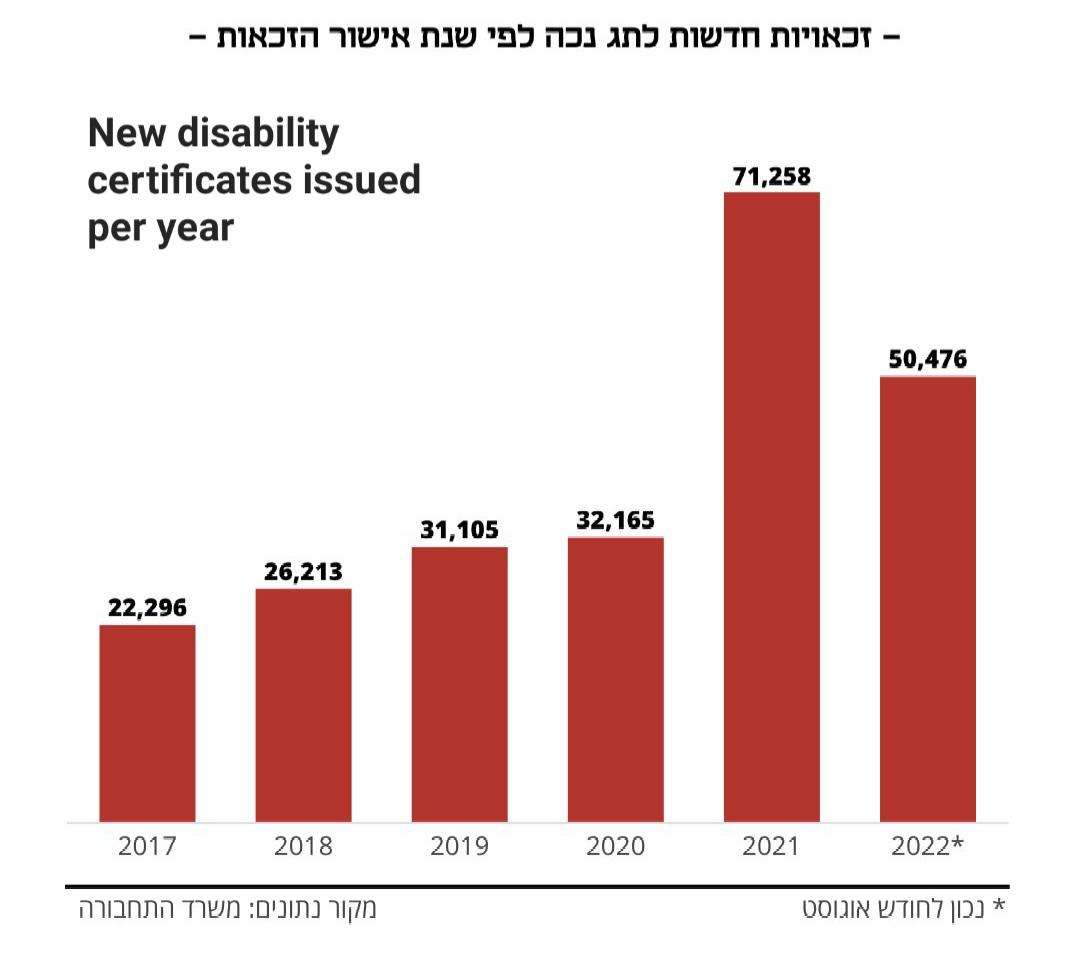 💉 The number of disability certificates issued in Israel in the last two years has skyrocketed, independent online analysts say.