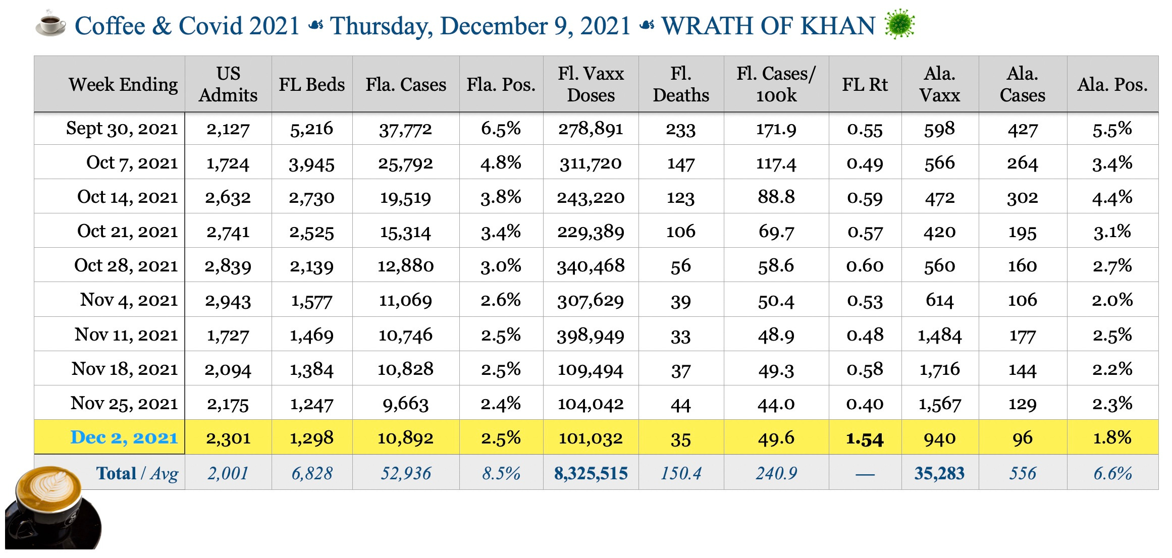 ☕️ Coffee & Covid ☙ Thursday, December 9, 2021 ☙ WRATH OF KHAN 🦠