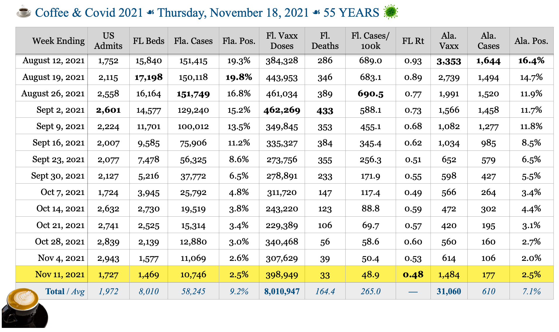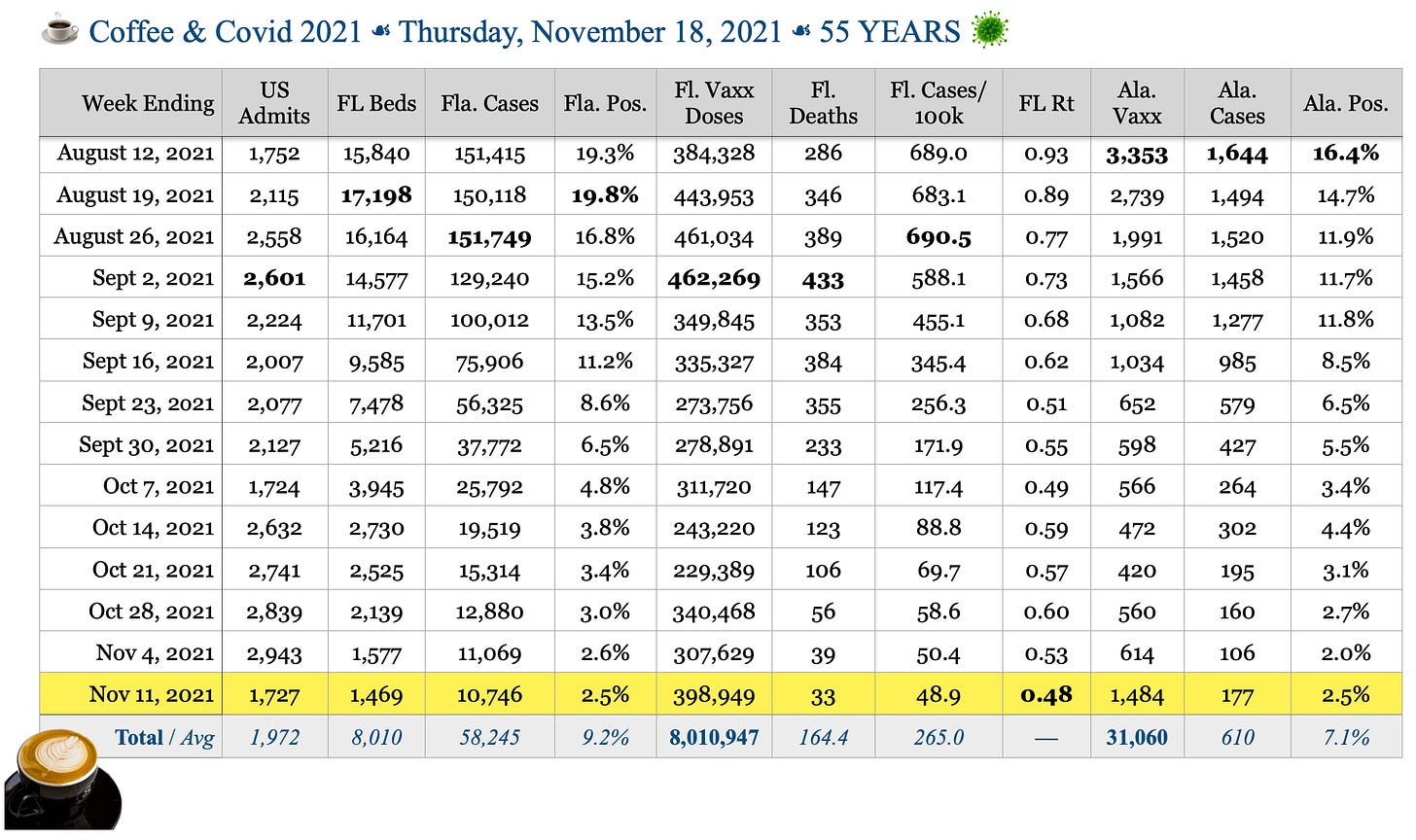 ☕️ Coffee & Covid ☙ Thursday, November 18, 2021 ☙ 55 YEARS 🦠