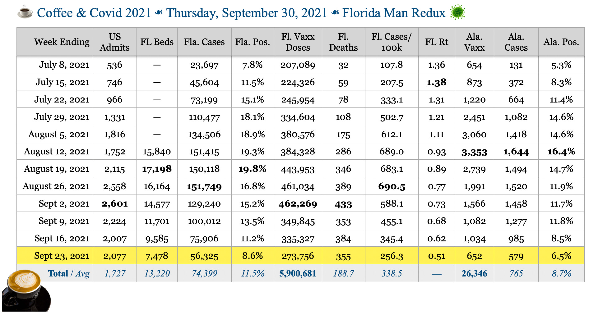 ☕️ Coffee & Covid ☙ Thursday, September 30, 2021 ☙ Florida Man Redux 🦠