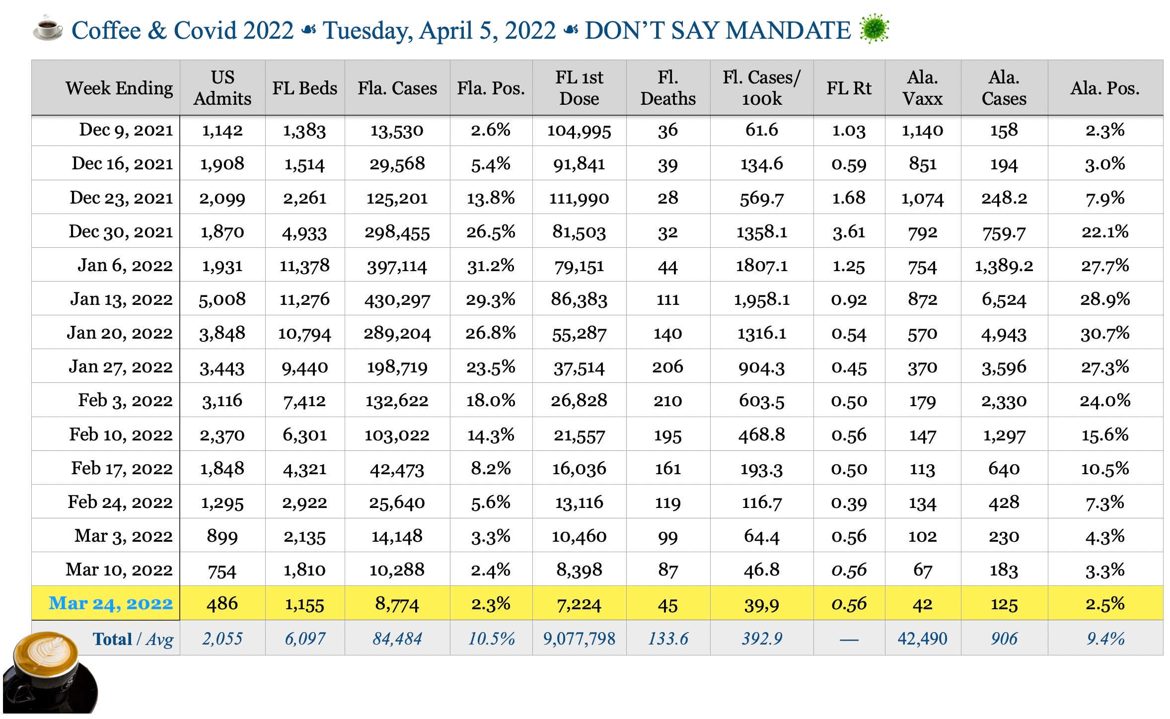 ☕️ Coffee & Covid ☙ Tuesday, April 5, 2022 ☙ DON’T SAY MANDATE 🦠