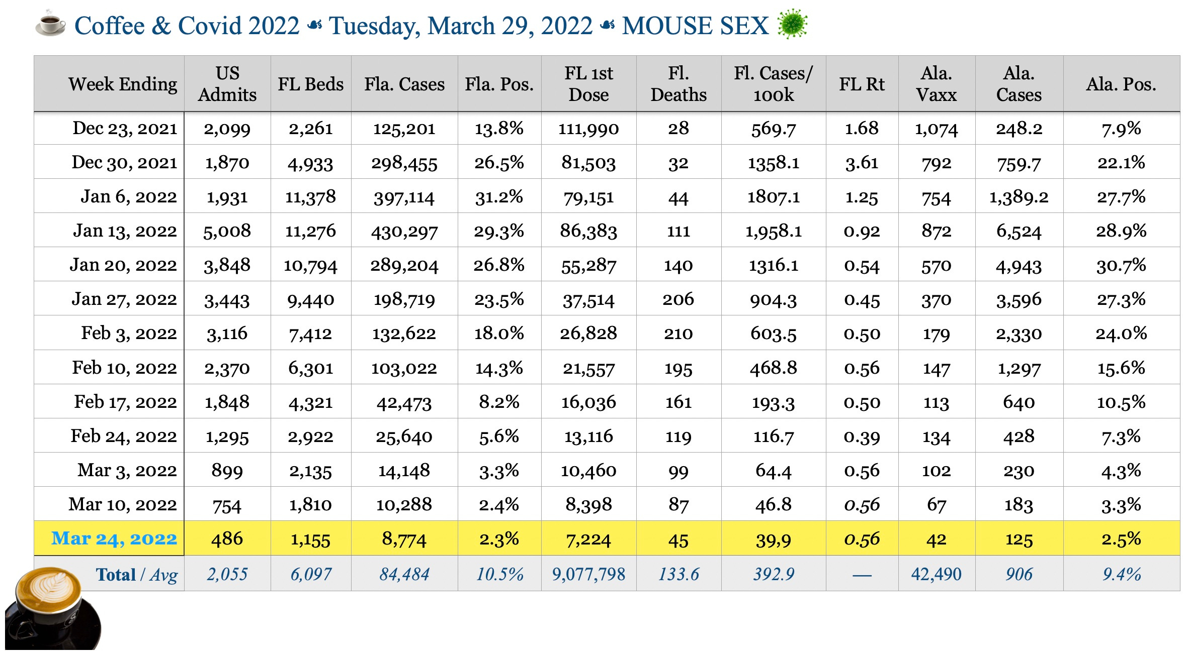 ☕️ Coffee & Covid ☙ Tuesday, March 29, 2022 ☙ MOUSE SEX 🦠