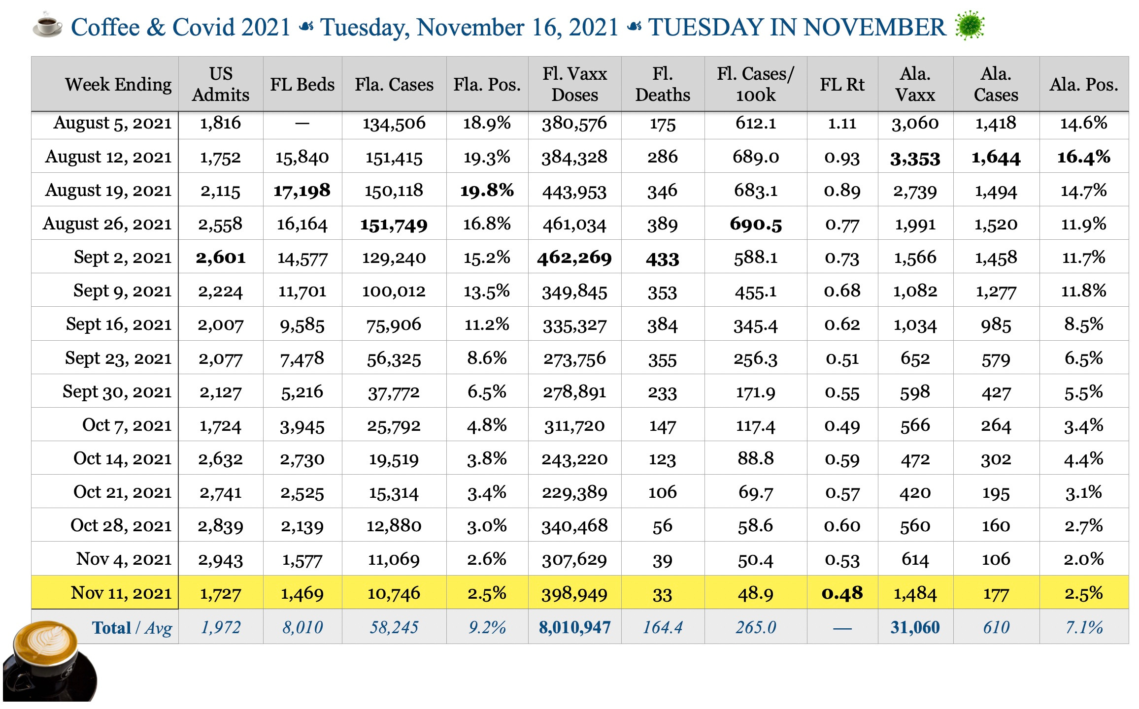 ☕️ Coffee & Covid ☙ Tuesday, Nov. 16, 2021 ☙ TUESDAY IN NOVEMBER 🦠