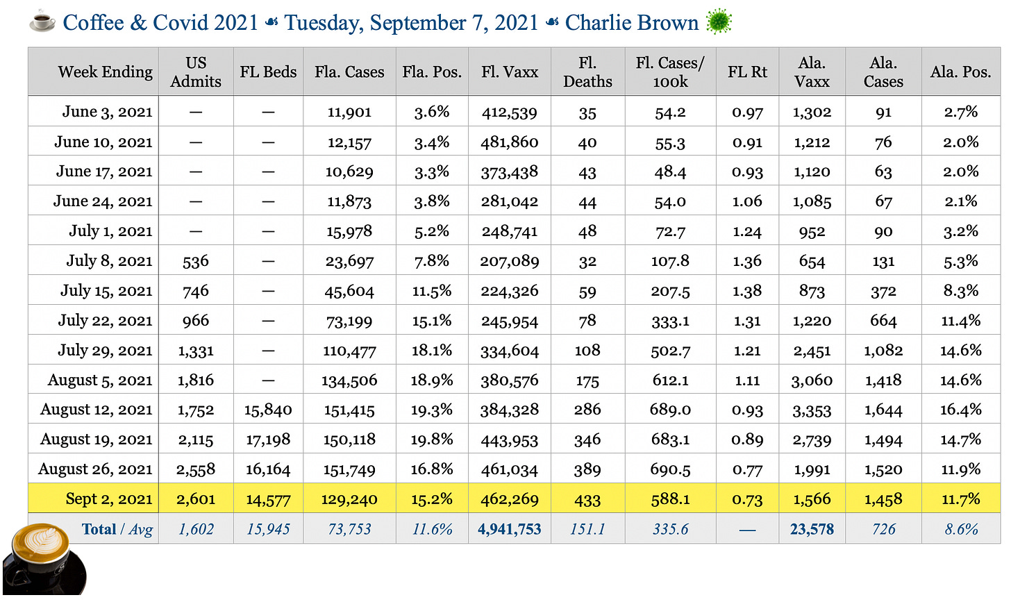 ☕️ Coffee & Covid ☙ Tuesday, September 7, 2021 ☙ Charlie Brown 🦠