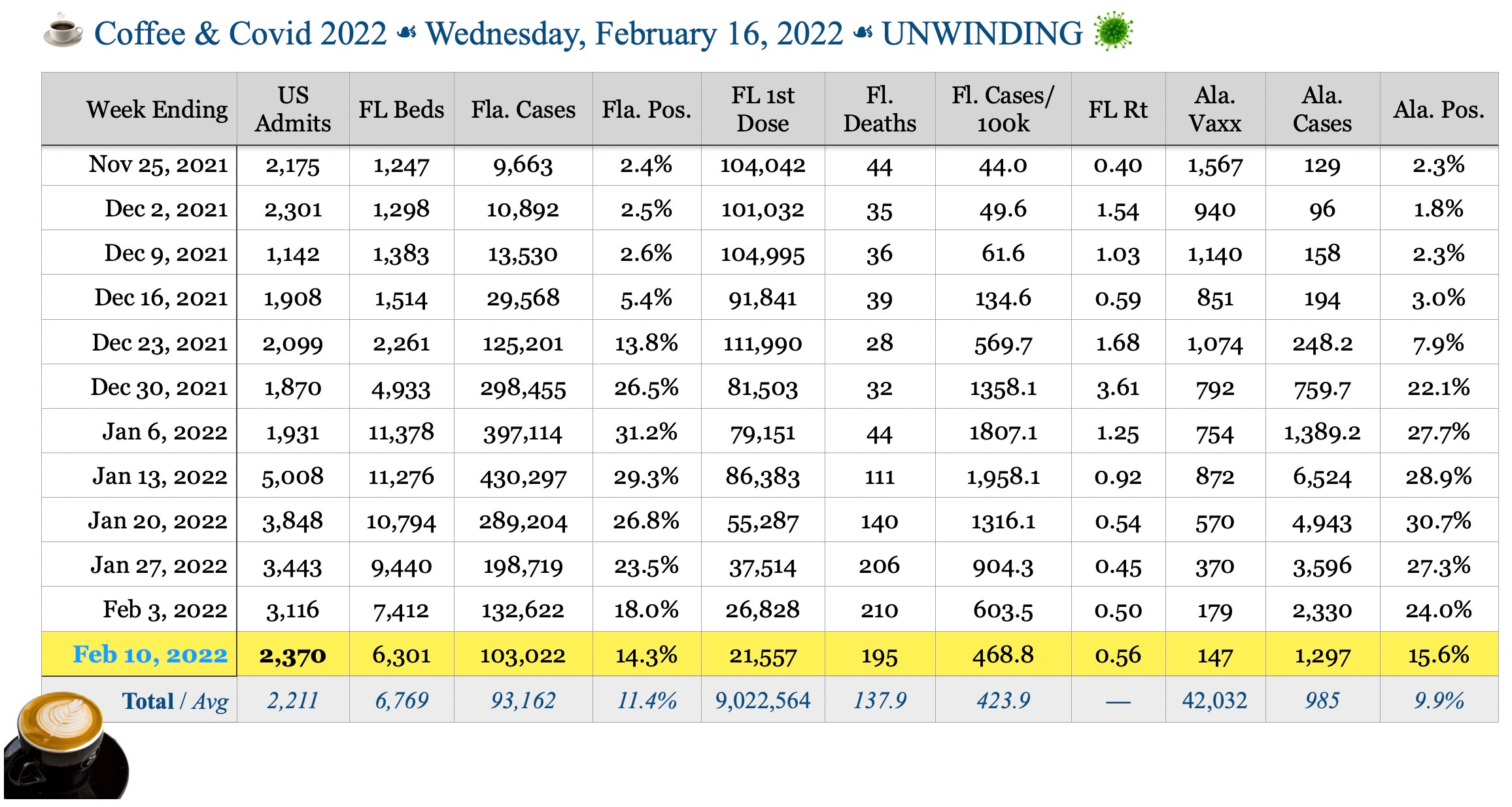 ☕️ Coffee & Covid ☙ Wednesday, February 16, 2022 ☙ UNWINDING 🦠