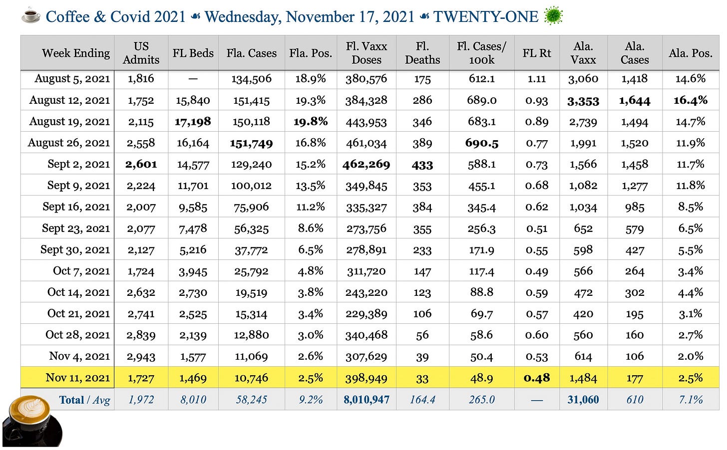☕️ Coffee & Covid ☙ Wednesday, November 17, 2021 ☙ TWENTY-ONE 🦠
