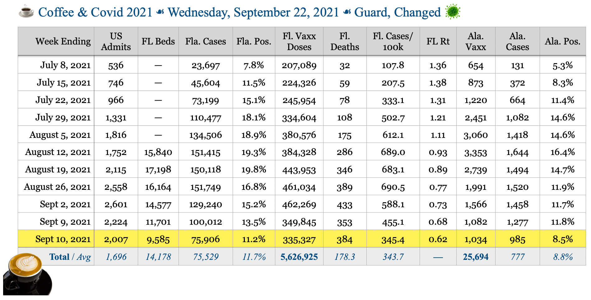 ☕️ Coffee & Covid ☙ Wednesday, September 22, 2021 ☙ Guard, Changed 🦠