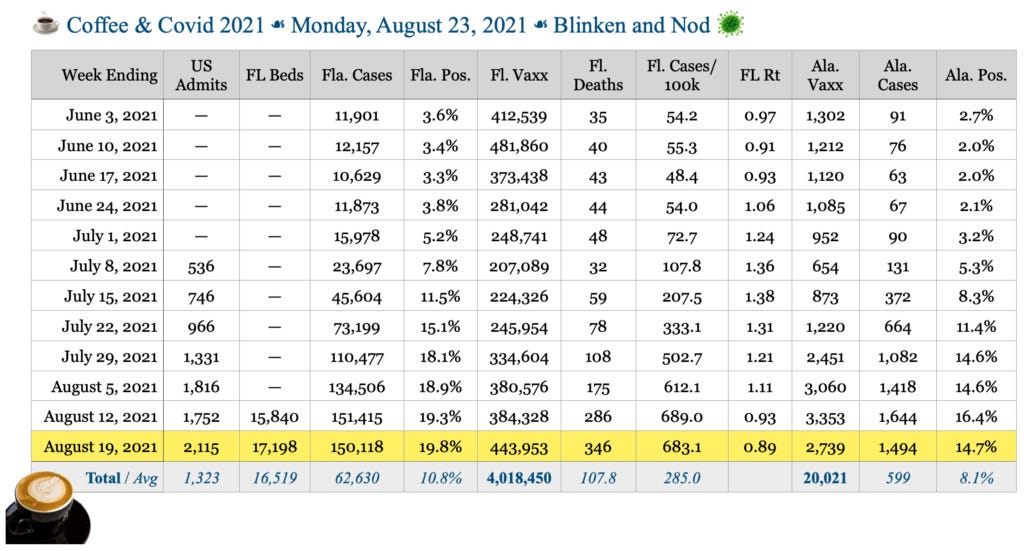 ☕️ Coffee & Covid ☙ Monday, August 23, 2021 ☙ Failing Upwards