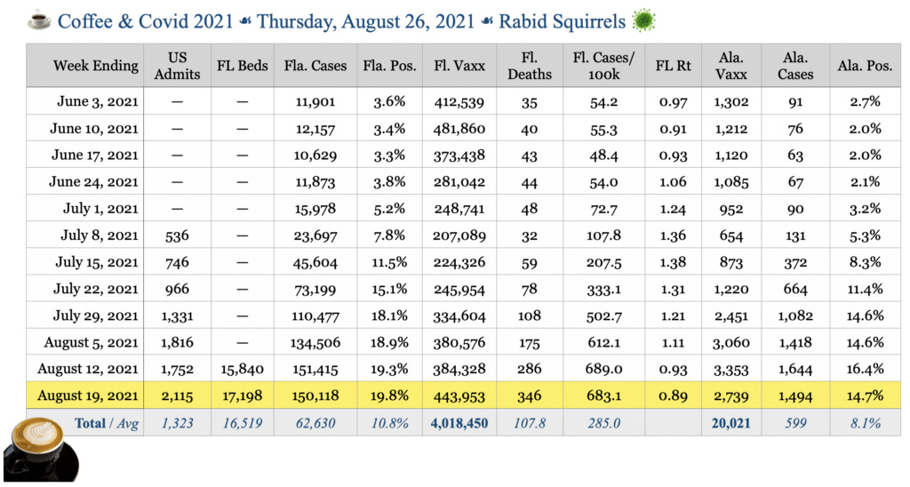 ☕️ Coffee & Covid ☙ Thursday, August 26, 2021 ☙ Rabid Squirrels