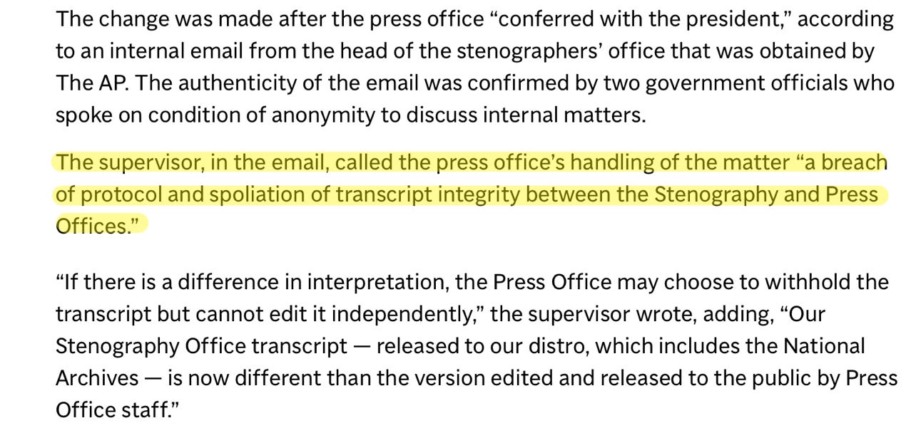 The White House historians called Biden’s Press Office’s after-the-fact revision a “breach of protocol” and “spoliation of transcript integrity.” In other words, Democrats only follow rules when the rules help them: