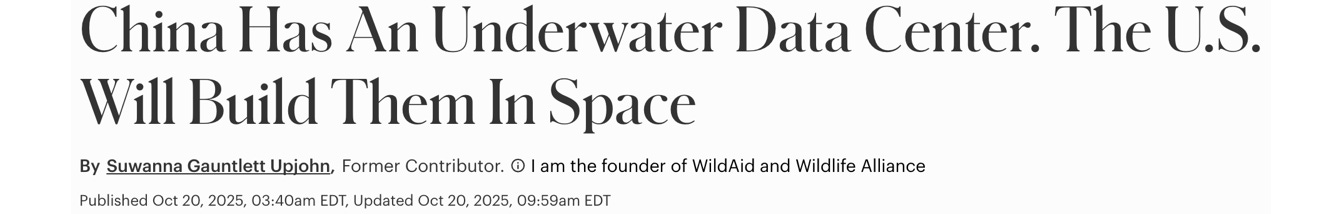 Before you scoff about orbiting datacenters, we’ve been headed toward them for months, at least. Consider this remarkable headline from Forbes, last October: