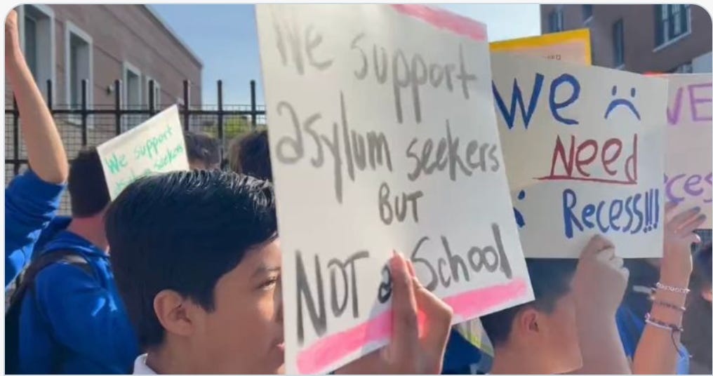 to the confusion in the heads of the NYC school children who are wrestling with trying to support (verbally) the same unwashed masses they want (physically) expelled from the hallowed halls of education (carefully threading the virtue-signaling minefield by first showing support for illegal migrants and only THEN going all NIMBY")...with our dear friend John Fetterman providing the piece de resistance...I got my laughs in today, Jeff.