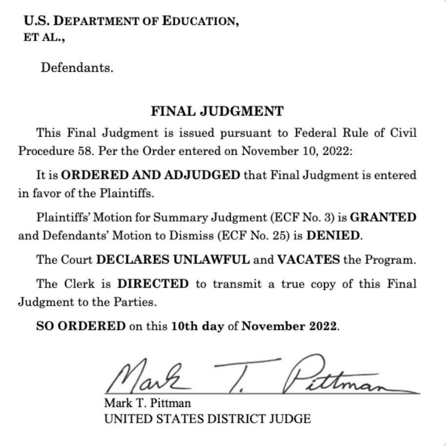In his longer memorandum opinion, Judge Pittman explained Joe Biden can’t just sign an executive order whenever he feels like it and magically wipe out people’s government-guaranteed student debt. Biden’s not the King: