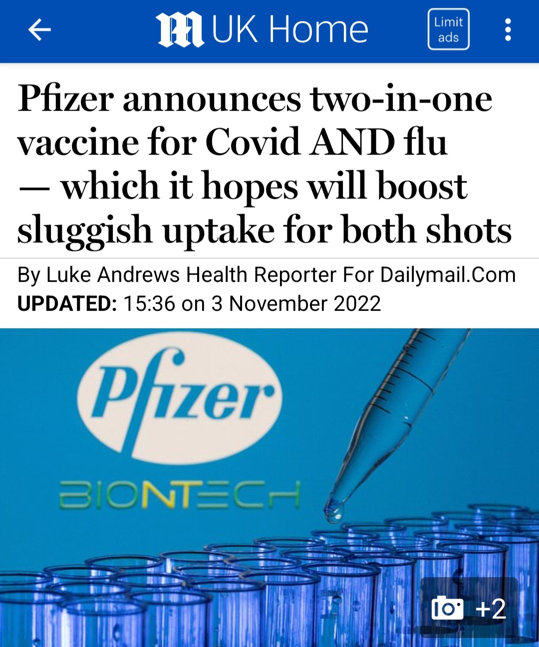 Great job, Pfizer. Now, people who were, for some reason, planning to get the influenza shot but not the Covid experimental therapeutic jab, are not going to get either one. Morons.