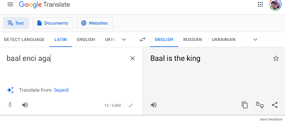 It turns out that, if you add double the first ‘a’ in the name, which might be fair to do, as I’ll explain in a moment, and then break the name into three ‘words,’ you get this: Baal enci aga. Then — try it yourself, I did — Google translates the three words from Latin to English as: “Baal is the king.”