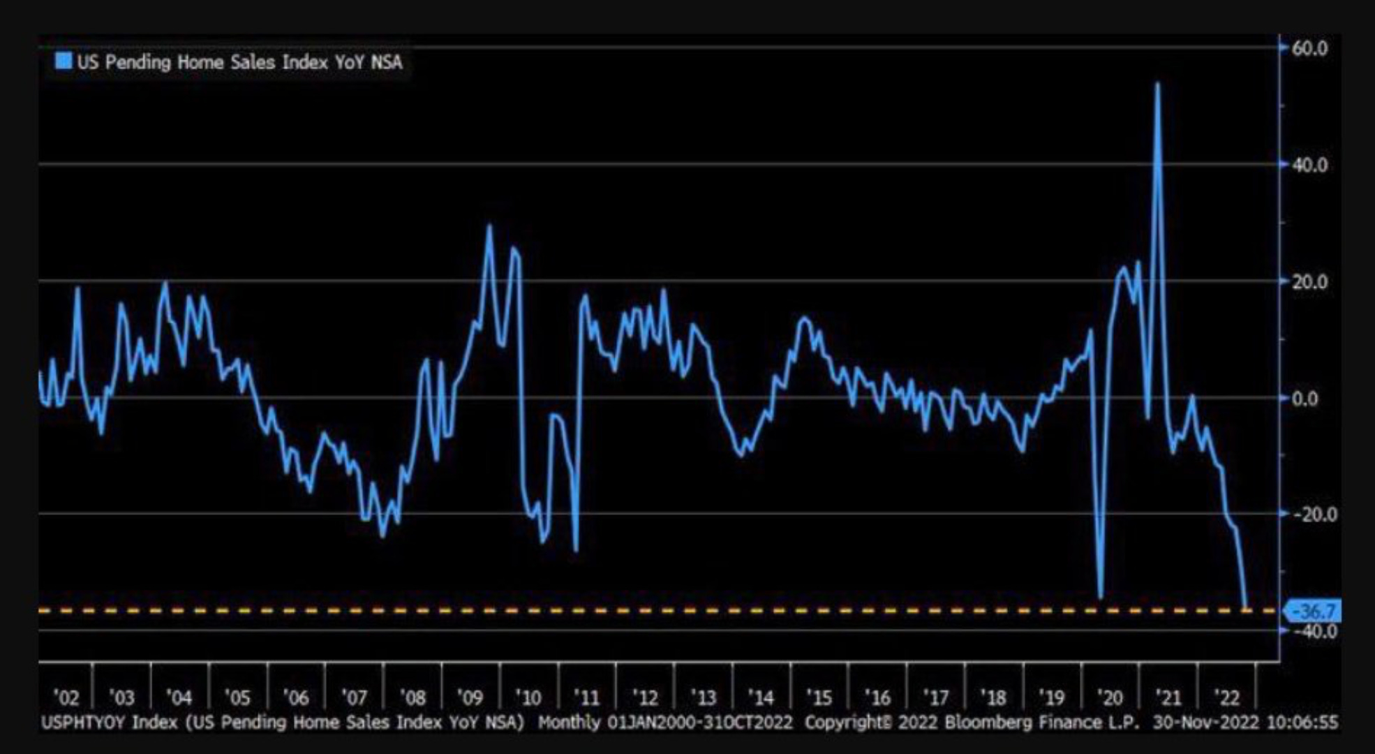 📉 Bidenomics showed up strong this week, as pending home sales figures were down a record 37% year-over-year. The line on the graph is falling like a lead ice cream cone.