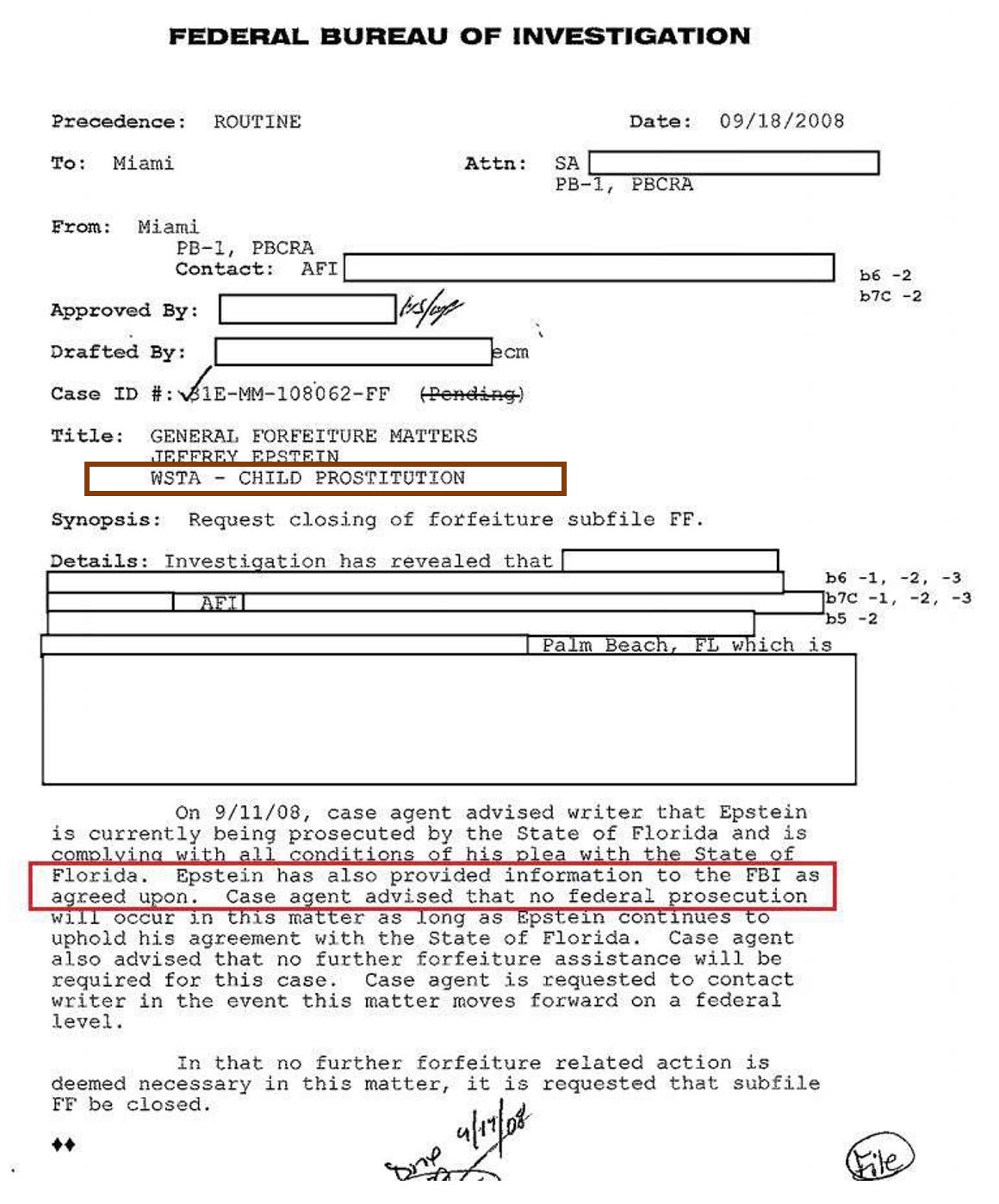 This form — one of many, apparently — raises the question of whether the FBI knew about — and ignored — Epstein’s continuing human trafficking operation, wherein he arranged for large numbers of young girls to be raped by famous people, and for which Ghislaine Maxwell was also convicted, after a trial in which not one of the people who raped the underaged girls was identified.