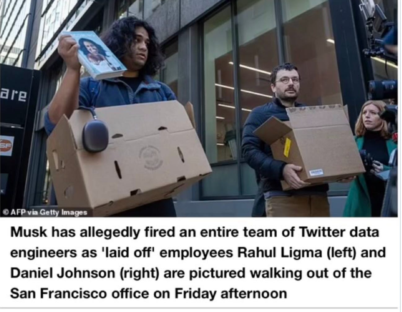 🔥 This next story is awesomely hilarious. Two pranksters carrying banker’s boxes and pretending to be laid-off Twitter programmers trolled corporate media yesterday, which all fell for the pair’s ridiculous story, hook, line, and sinker.