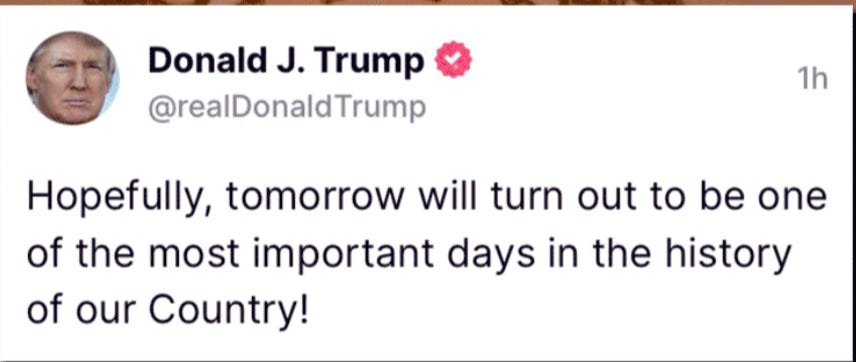 Ever the showman, yesterday President Trump posted that his announcement might be one of the most important days in the history of the United States. You never know.
