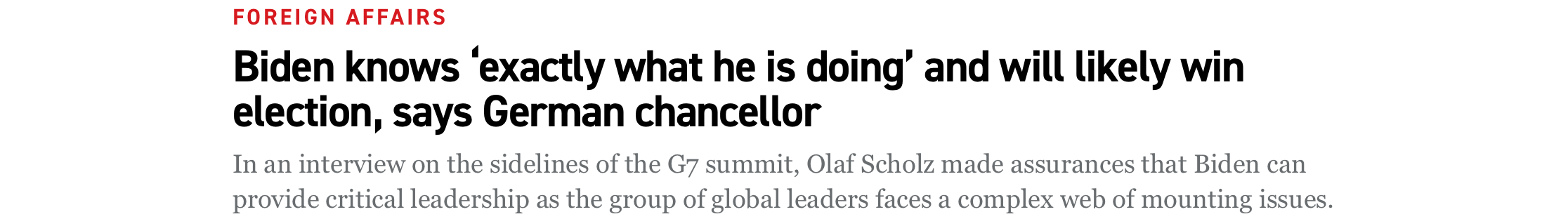 Ruh-roh. I bet Scholz wishes he could take that back. In the history of bad takes, Scholz’s assurances about Biden’s critical leadership skills will surely earn him at least a runner-up award.