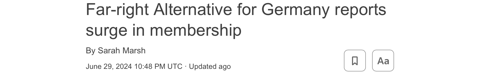 📉 📉 There’s an old saying that goes, When America sneezes, the world catches pneumonia, and booster shots don’t work. Biden’s Disastrous Debate Debacle ignited a smouldering Western crisis far beyond the Democrat party’s internal political problems. The entire West is suddenly and unexpectedly in shambolic disarray. A panicked NBC ran this morning’s first example under its headline, “Far-right 'at the gates of power' after historic France election result.”