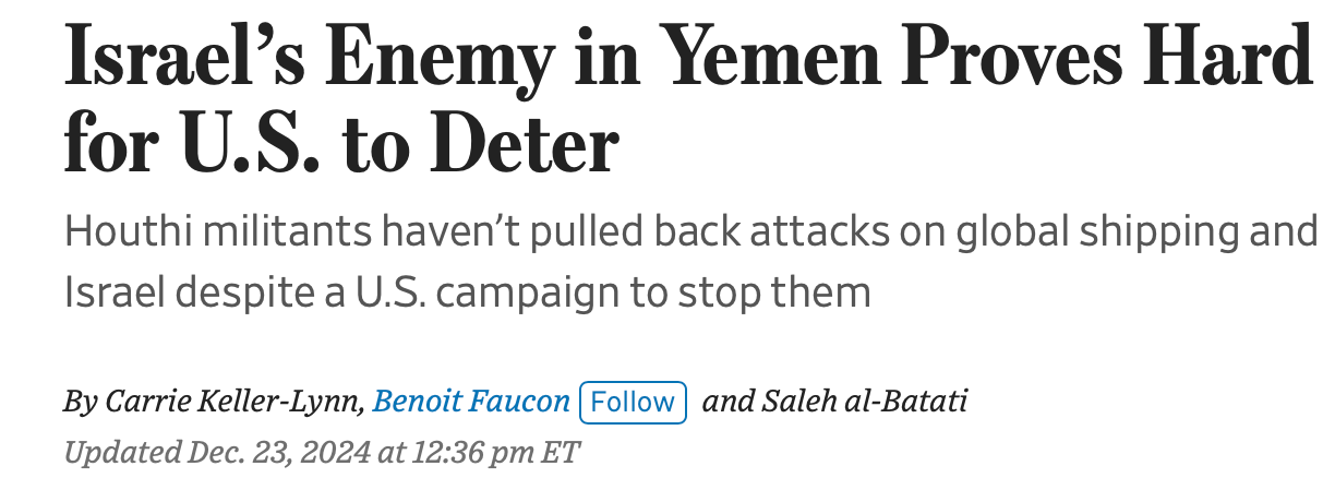 In the wake of either the “friendly fire” incident or the successful Houthi attack, whichever, the Wall Street Journal ran this headline yesterday: