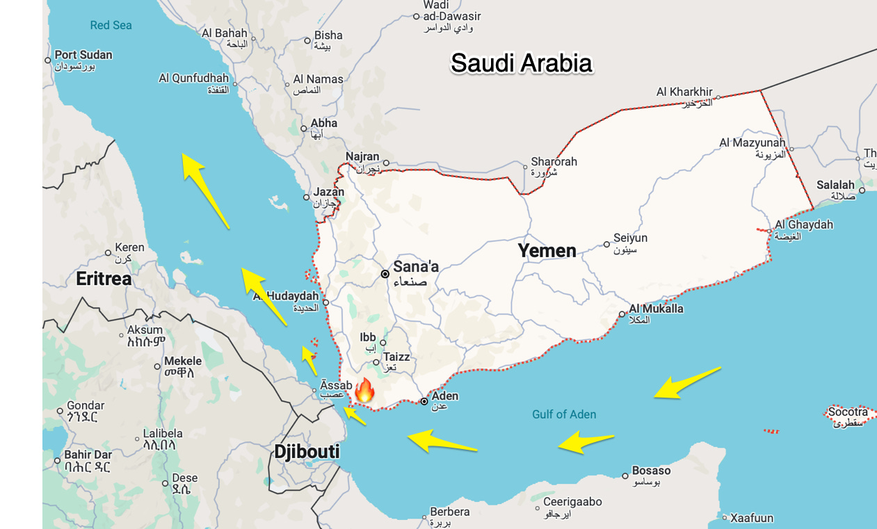 Without exaggeration, the Houthis enjoy enormous strategic leverage because of that critical shipping chokepoint. Up to ten percent of all worldwide commercial traffic and a substantial amount of military traffic passes right under the Houthi’s angry noses. The disruption of even a fraction of the traffic through the Bab-el-Mandeb Strait —the “Gate of Tears” in Arabic— has global consequences, especially for the West.