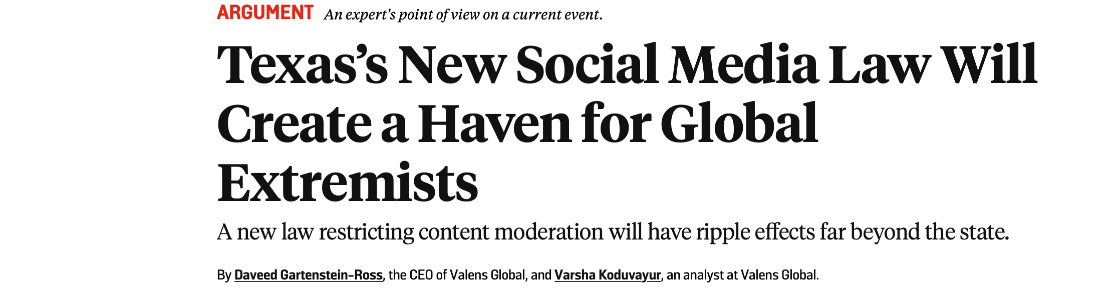The authors of the Foreign Policy op-ed admitted their conflict of interests, noting parenthetically that “(Full disclosure: At Valens Global, we have received funding from Meta, the owner of Facebook, for our work on how national security intersects with technology.)” So.