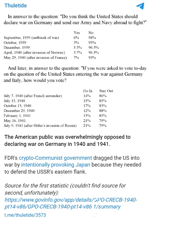 The average person thinks war is an act of military aggression which it assuredly is but that is not the only definition of war. Sanctions are themselves an act of war. When FDR began to blockage Japan in July 1940 which eventually cut of 80% of Japan's oil and material imports, that was an act of war even though no war had been declared by Congress. Eventually Japan's desperate response was Pearl Harbor. All of this was by FDR's design even though he had campaigned for election on the promise to the American people that he would NOT get us involved in that "European war". The American people had had enough with WWI but Presidents are not "great Presidents" unless they are war presidents and FDR wanted desperately to get into that war. Our war has already started. BTW, President Johnson used the same tactic even though he had campaigned on a promise to the American people that "American boys would not die for those slant-eyed ******"...or something to that effect. So much for campaign promises, especially Democratic Party promises.