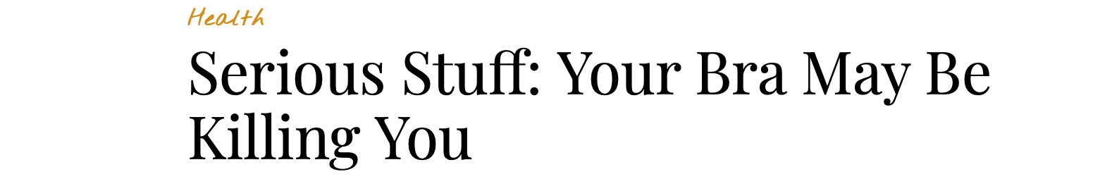 Once while on a business trip in Miami, I watched with great interest an elucidating segment on the local news affiliate captioned, “Could your bra be killing you?” Hey, it’s important to keep up on these huge … developments.
