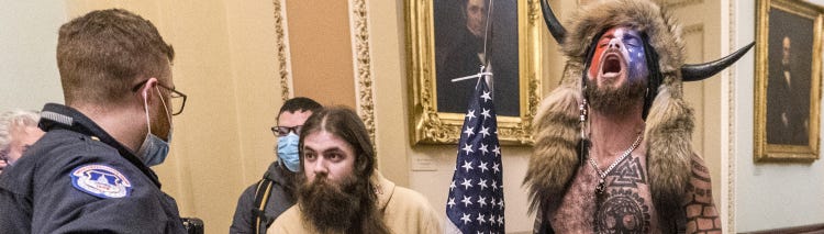 The DOJ picked Jacob Chansley as its guinea pig to test out its new legal theory. Chansely was the colorful “QAnon Shaman” who’d be certain to inflame a cerulean-blue DC jury. And the DOJ’s strategy worked perfectly: the jury gave Chansley five years, and the DOJ got its precedent.
