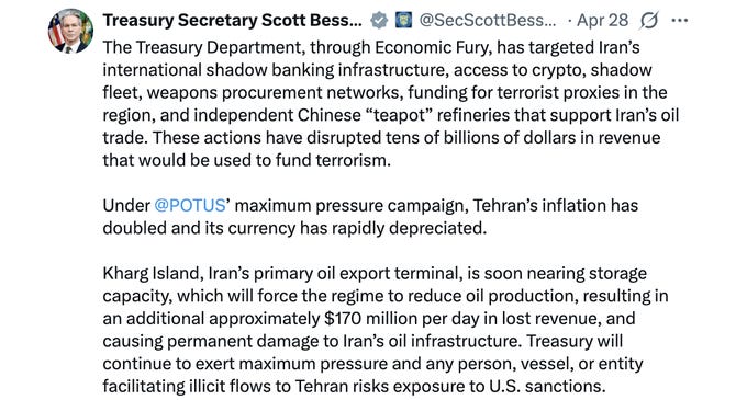 In his bland, straightforward way, Bessent said, “We will track them down,” sounding more like he was announcing a scheduled expansion of Treasury restroom facilities instead of burning up IRGC officials’ bugout bags amidst a war.
